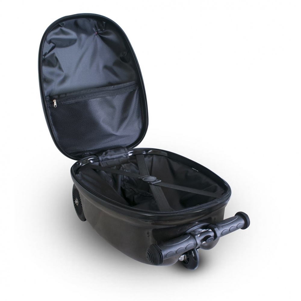 Колеса самоката выполнены из полиуретана, платформа и рулевая стойка из алюминия. Подвижное рулевое управление помогает детям лучше держать равновесие и управлять самокатам. Руль самоката регулируется по высоте. Складная конструкция самоката очень удобна во время поездок, самокат складывается в углубление чемодана.
