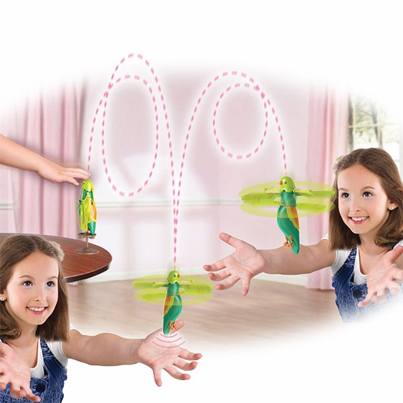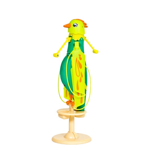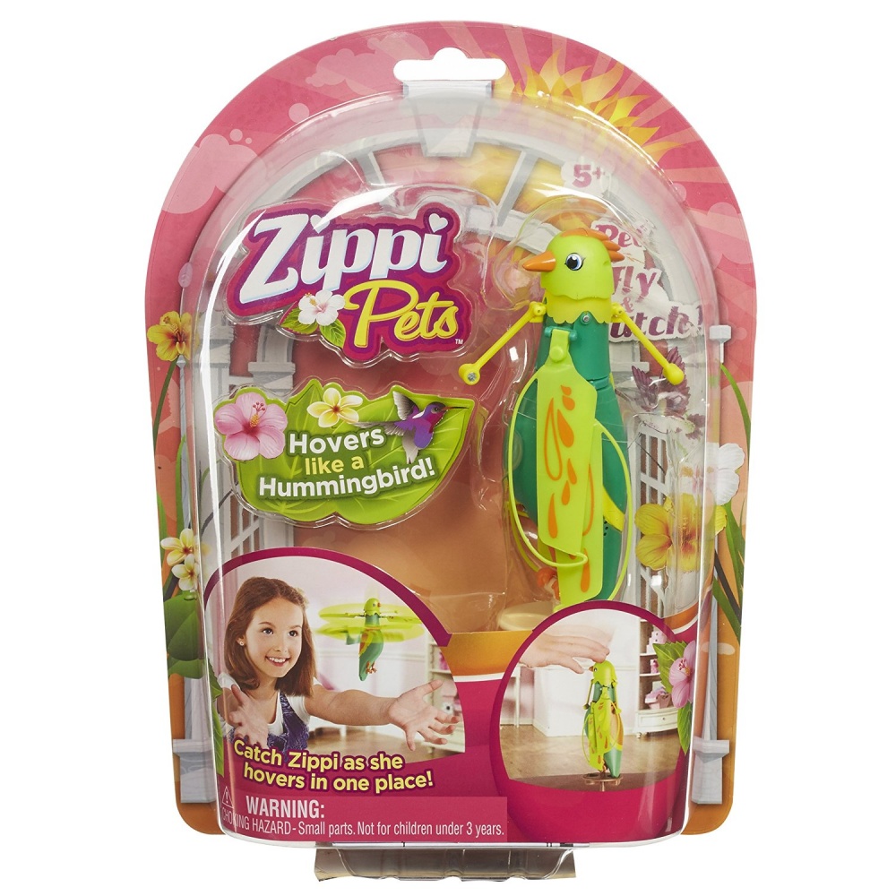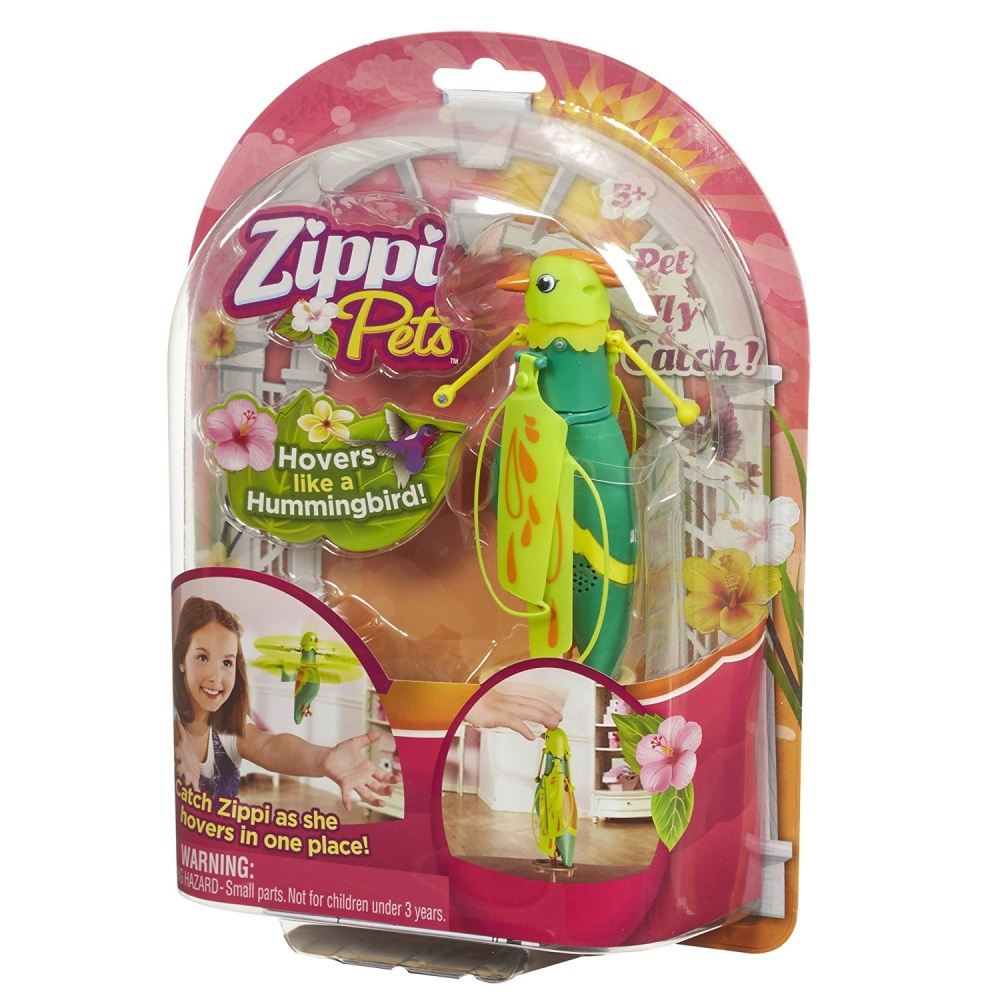 Интерактивная летающая птичка Zippi Pets зеленого цвета изготовлена из прочной и в тоже время легкой пластмассы. К ней прилагается пластиковая подставка, на которую игрушку можно установить. В игрушку встроены звуковые эффекты и, если погладить птичку по голове один раз, то она звонко запоет. Благодаря пропеллеру, расположенному у шеи, она также способна летать. Для этого нужно погладить ее три раза.