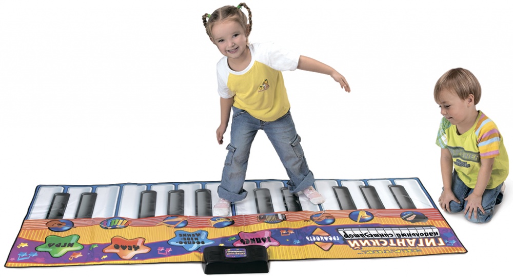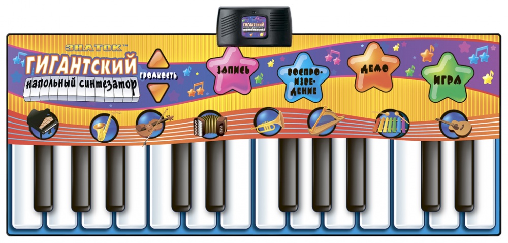 Описание Характеристики Комплектация Материалы для скачивания Напольный синтезатор представляет собой гибкий коврик с сенсорными контактами и электронным блоком управления. Синтезатор имеет 24 клавиши и 4 различных режима работы. Воспроизводит звуки 8 музыкальных инструментов фортепиано, саксофон, скрипку, аккордеон, трубу, арфу, ксилофон или гитару. Можно прослушать мелодии 10 песен, записанных в память синтезатора. В режиме «Запись» вы можете записать в память до 80 нот, а потом их прослушать. Синтезатор легко складывается и удобен при переноске и хранении. Дети легко обучаются обращению с ним, а мелодии и песни, которые он позволяет воспроизводить, способствуют развитию творческого музыкального самовыражения.