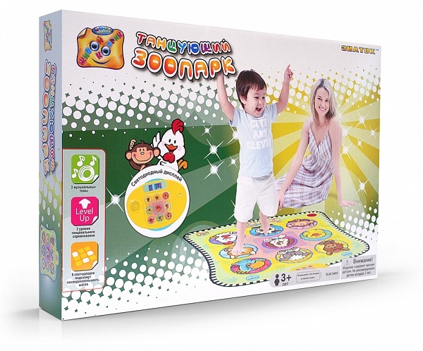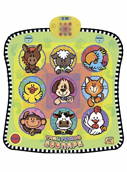 Звуковой коврик "Танцующий зоопарк" доставит много удовольствия и пользы детям. Коврик с изображением 9 животных и блоком управления воспроизводит мелодии и дает задания игроку. На панели управления загораются кнопки, соответствующие изображениям на коврике, на которые необходимо наступать. На коврике так же загораются светодиоды в помощь танцующим. У игрушки можно регулировать уровень сложности и громкость воспроизведения звука.