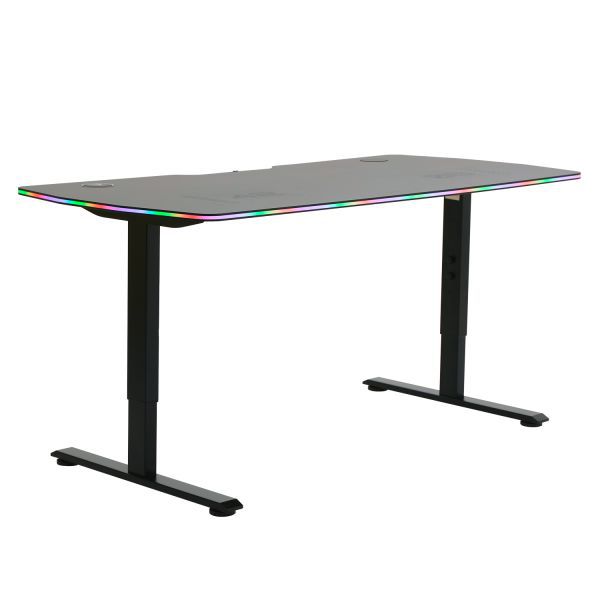 Стол компьютерный игровой Platform PRO 160 с широкой столешницей с отделкой "под карбон", регулировкой высоты и RGB подсветкой по всему контуру стола.