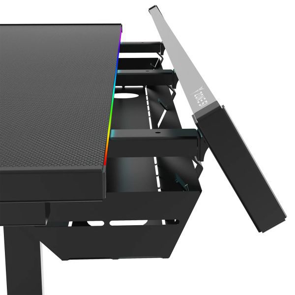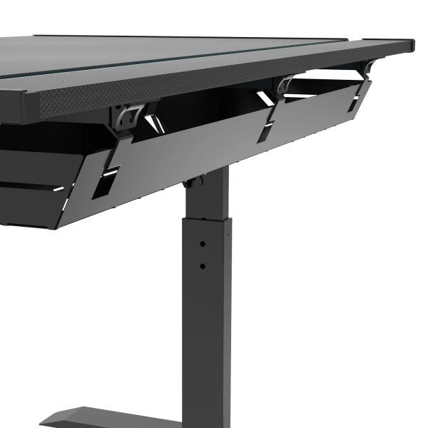 Широкая и прочная столешница из ЛДСП с покрытием из водостойкого пластика с отделкой "под карбон" позволяет разместить на рабочей поверхности монитор, игровую периферию и системный блок - места хватит для всего. Ты можешь выбрать один из двух размеров - 120 и 160, основываясь на Ваших потребностях.